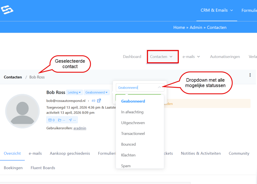 Contact statusbeheer in Autorespond is gebaseerd op FluentCRM Pro — inbegrepen in je pakket. Lees de Engelse documentatie