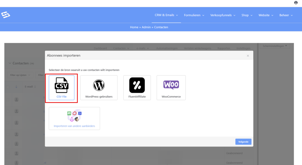 De import-functionaliteit in Autorespond is gebaseerd op FluentCRM — inbegrepen in je pakket. Lees de Engelse documentatie