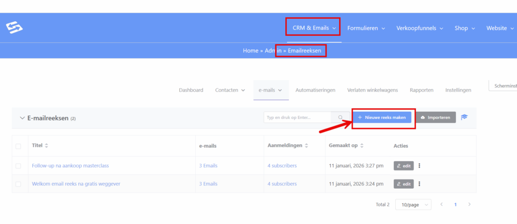 Nieuwe e-mailreeks aanmaken #
