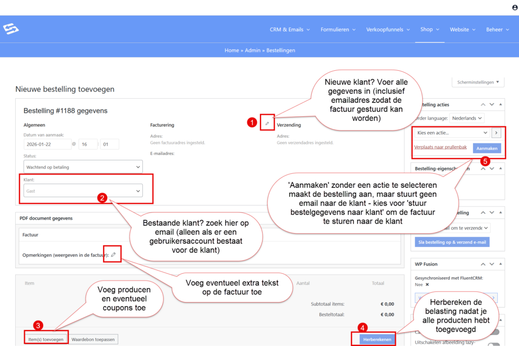 Handmatig een nieuwe bestelling aanmaken