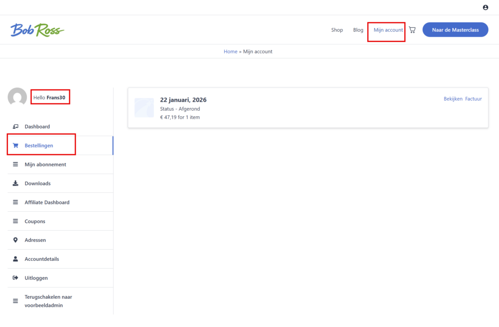 Klanten met een eigen gebruikersaccount kunnen ook inloggen en hun eigen bestellingen en facturen zien: