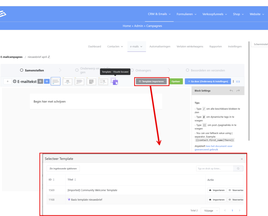 - Ga naar CRM & Emails → Terugkerende Campagnes